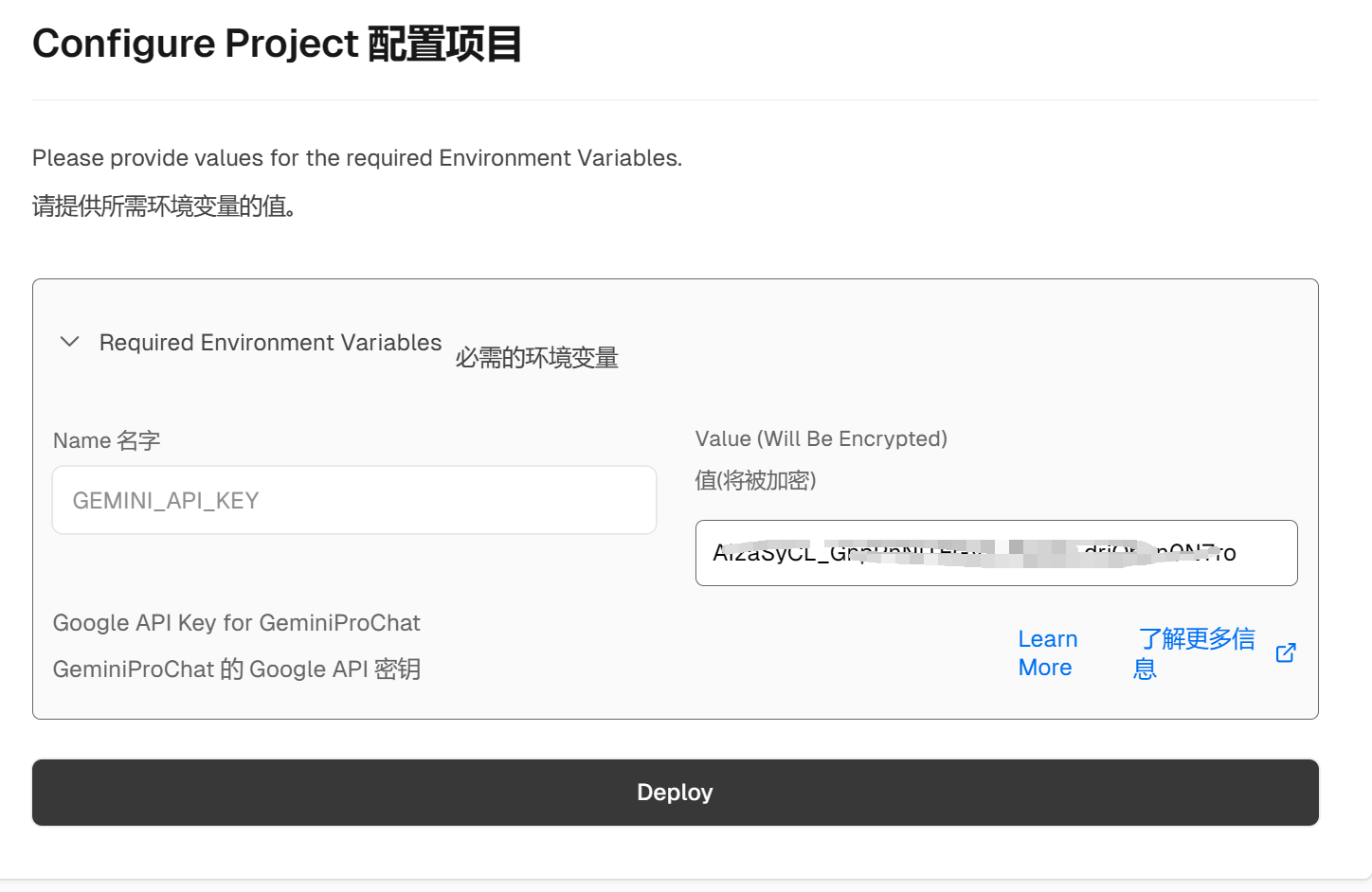获取API密钥后,请妥善保管,这将在后续的部署中使用。以下是获取API密钥的参考截图: