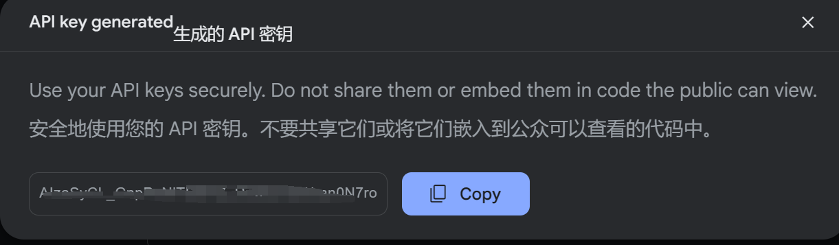 按照流程操作完成后,你的API密钥就已经准备就绪。